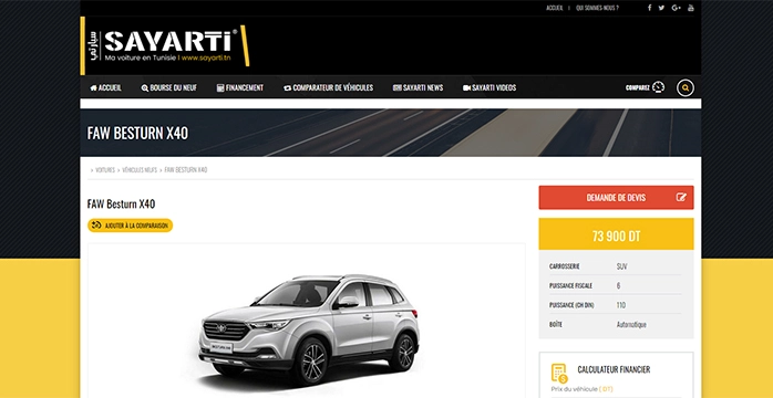 Le premier SUV de la marque FAW (First Automobile Works) en Tunisie sera le Besturn X40...