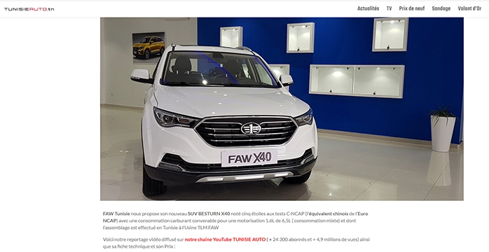 TLM Motors importateur officiel de la marque chinoise FAW en Tunisie vient de débuter la commercialisation du Besturn X40..