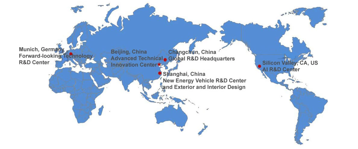 Activités: Développement de plates-formes (Hongqi, Besturn), Planification et développement de produits Hongqi; Développement du groupe motopropulseur; Développement de châssis; Analyse NVH (bruit, vibration, dureté); CAE (ingénierie assistée par ordinateur); Production d'essai; Essai; Matériel; Usinage non traditionnel; Poids léger; partage des données du véhicule; Système de R & D et renforcement des capacités.